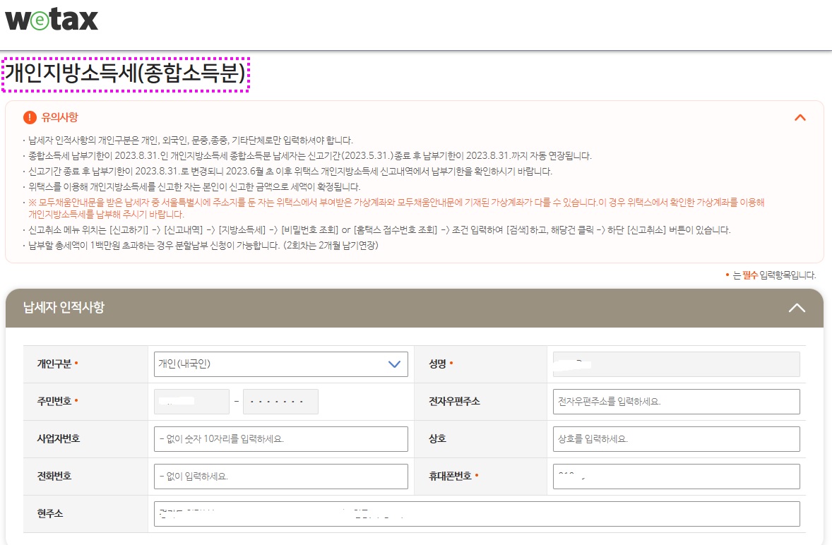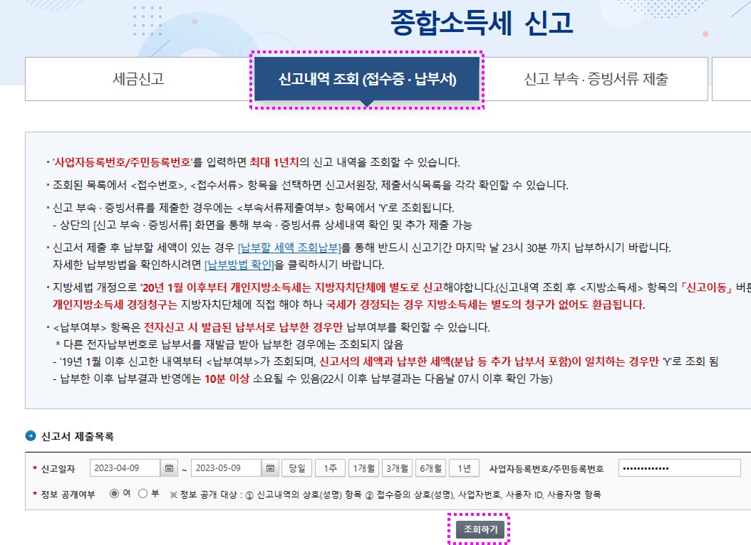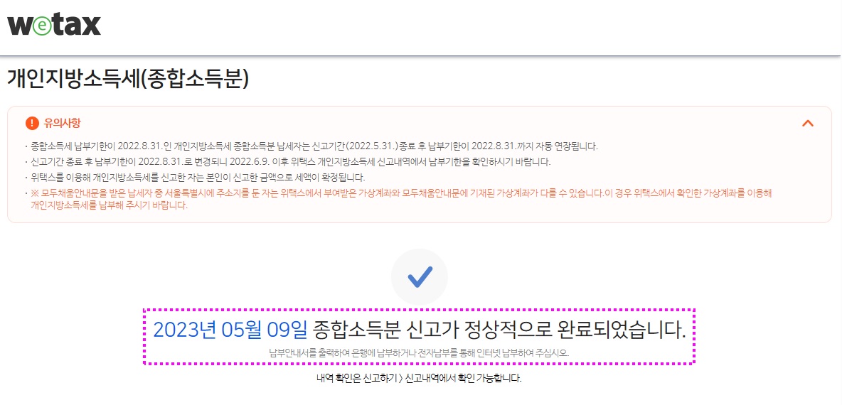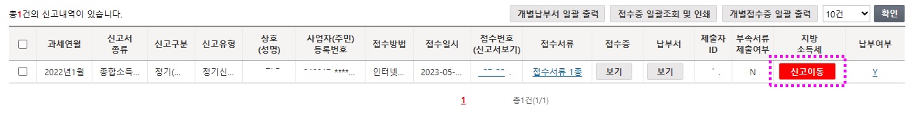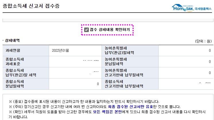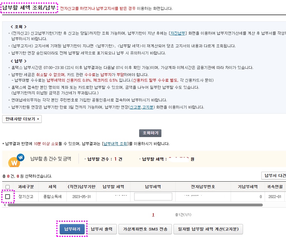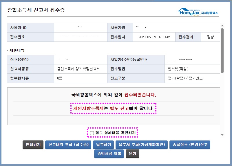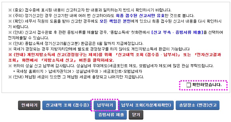홈택스에서 종합소득세(국세)를 납부하셨다면