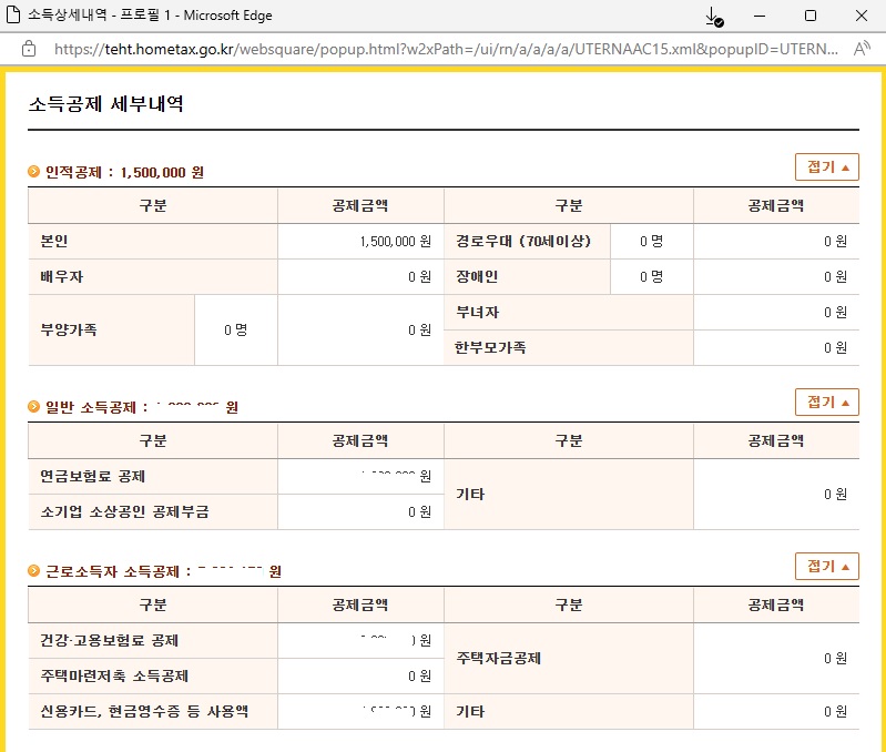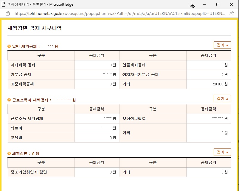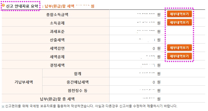 각 항목의 [세부내역 보기]를 누르면 아래와 같이