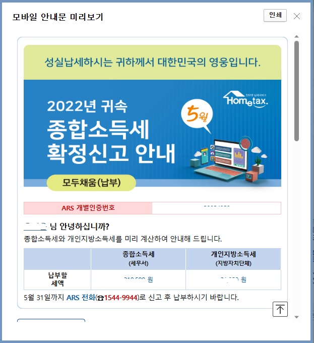 그럼 아래와 같이 종합소득세 안내문도 확인할 수 있습니다