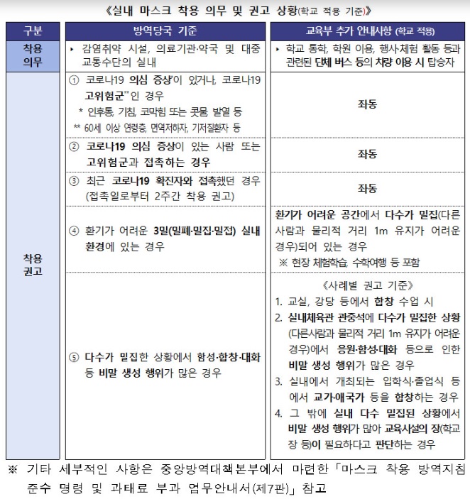 교육부가 학교에 적용하는 추가 안내 사항도 참고하시기 바랍니다